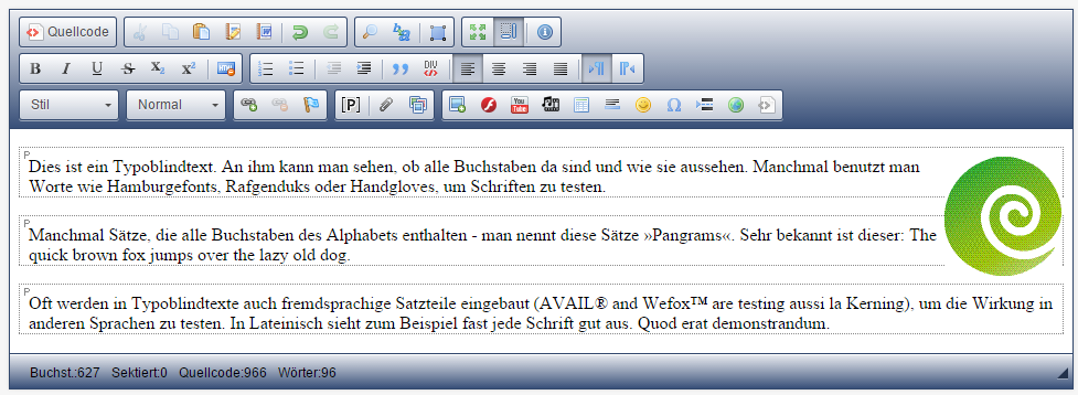 Der Editor findet sich vor allem in Fließtextmodulen.